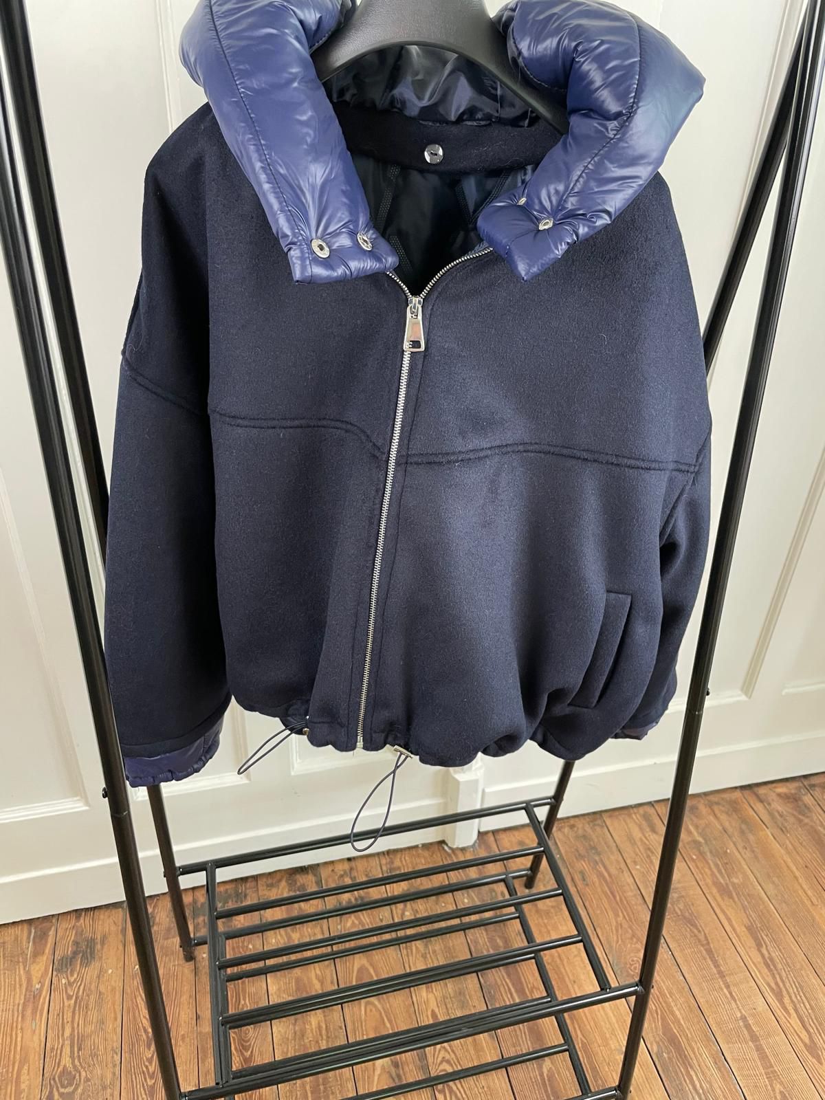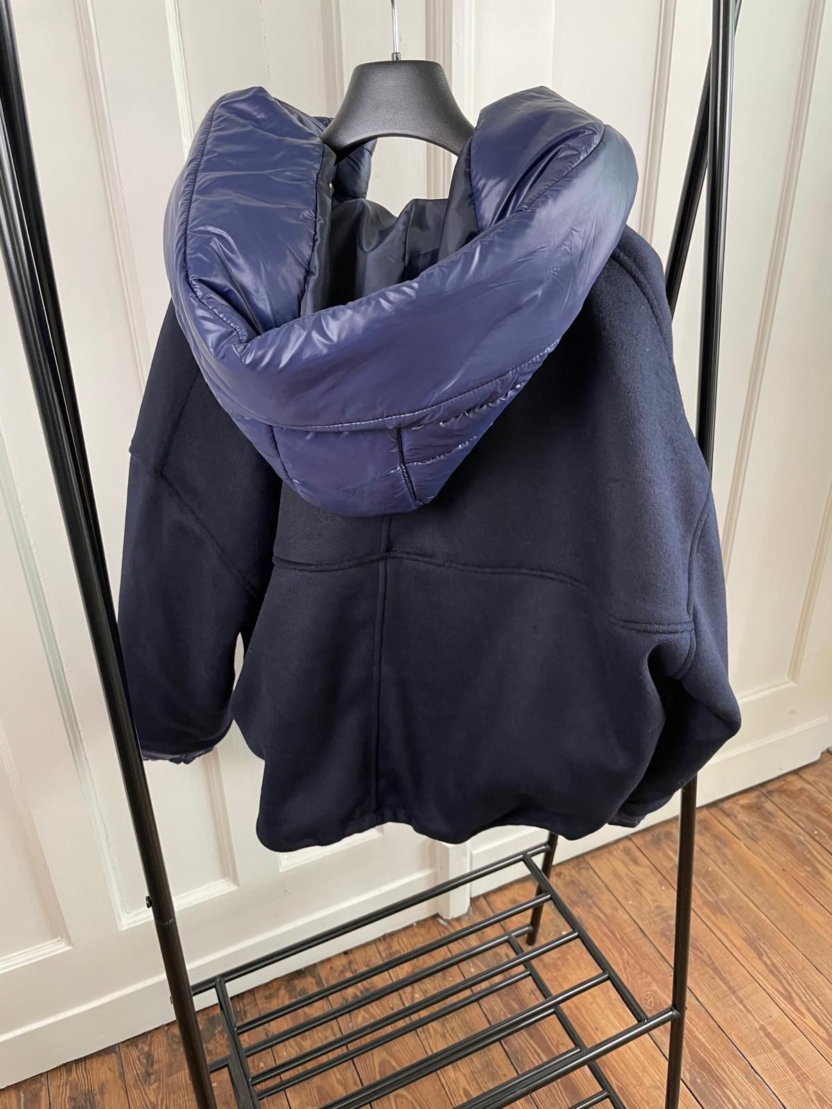 Die gesteppte Kapuze und der Kragen sowie die Ärmelbündchen sind gesteppt.