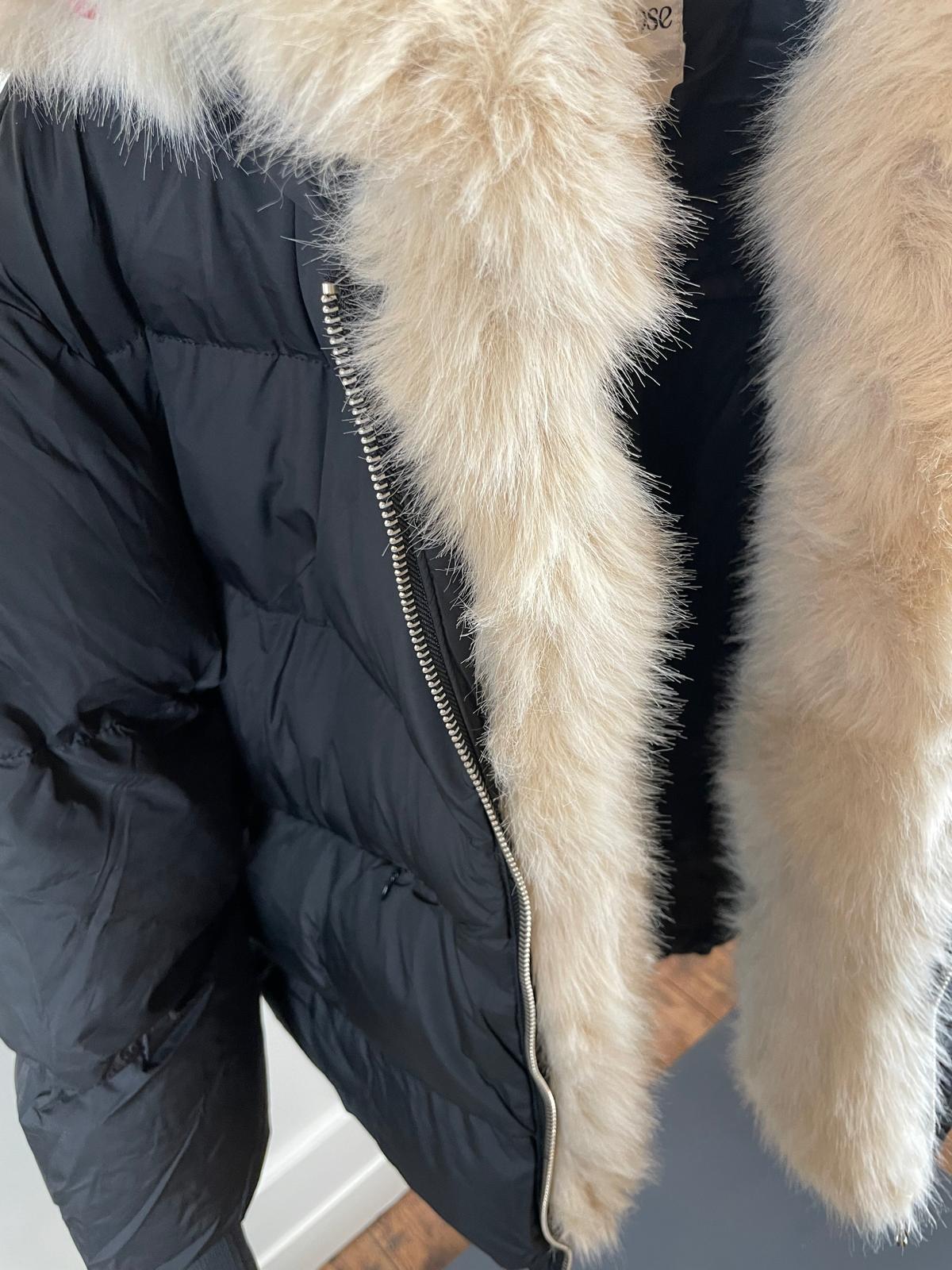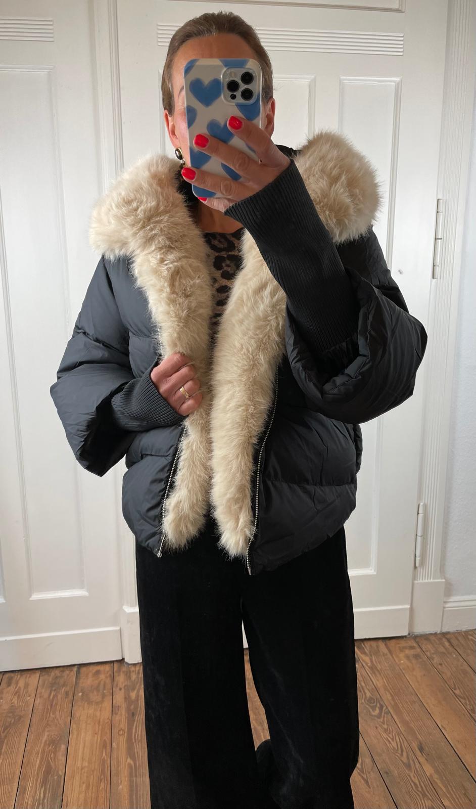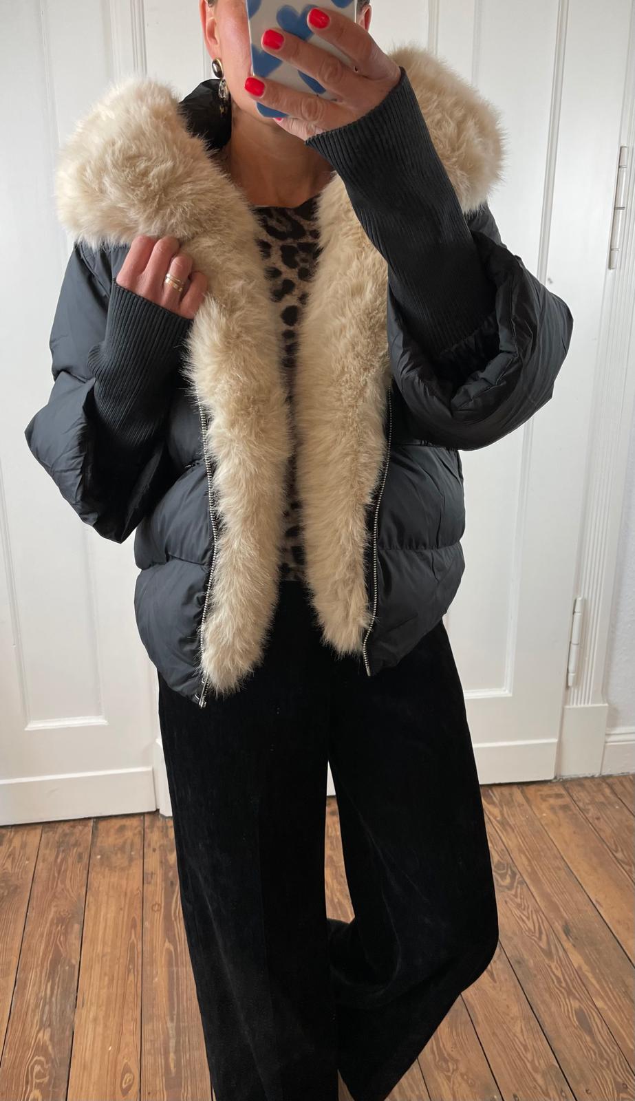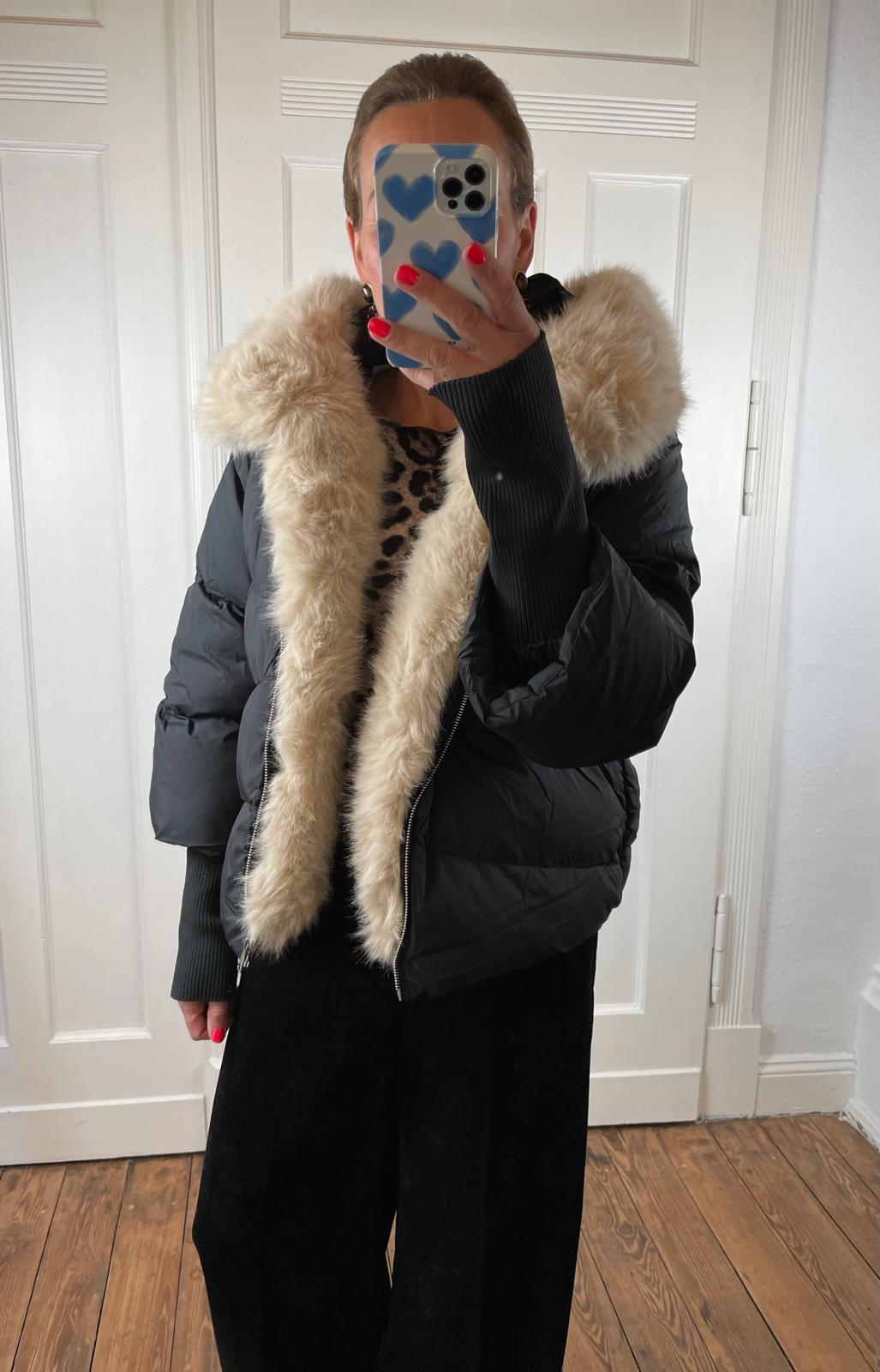Das Fell ist abnehmbar. Die Jacke hat 2 tiefe und kuschelig gefütterte Taschen mit einem Reißverschluss