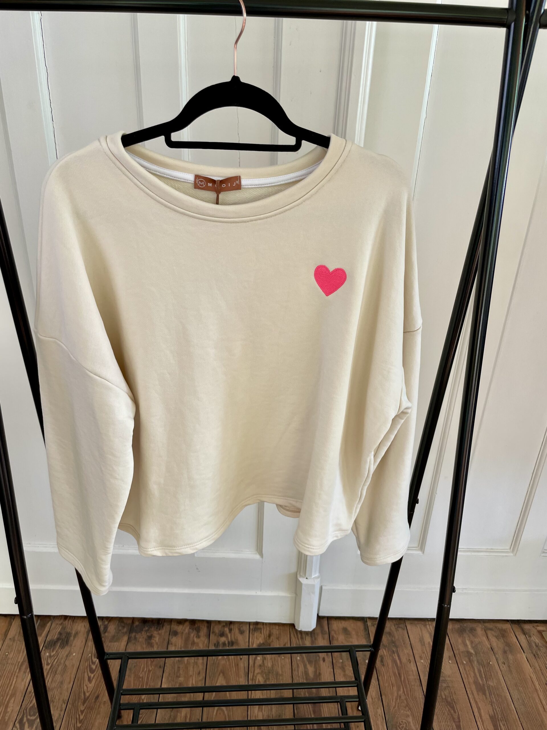 Ein etwas kürzeres Sweat mit einem pink aufgesticktem Herz auf der Vorderseite.
