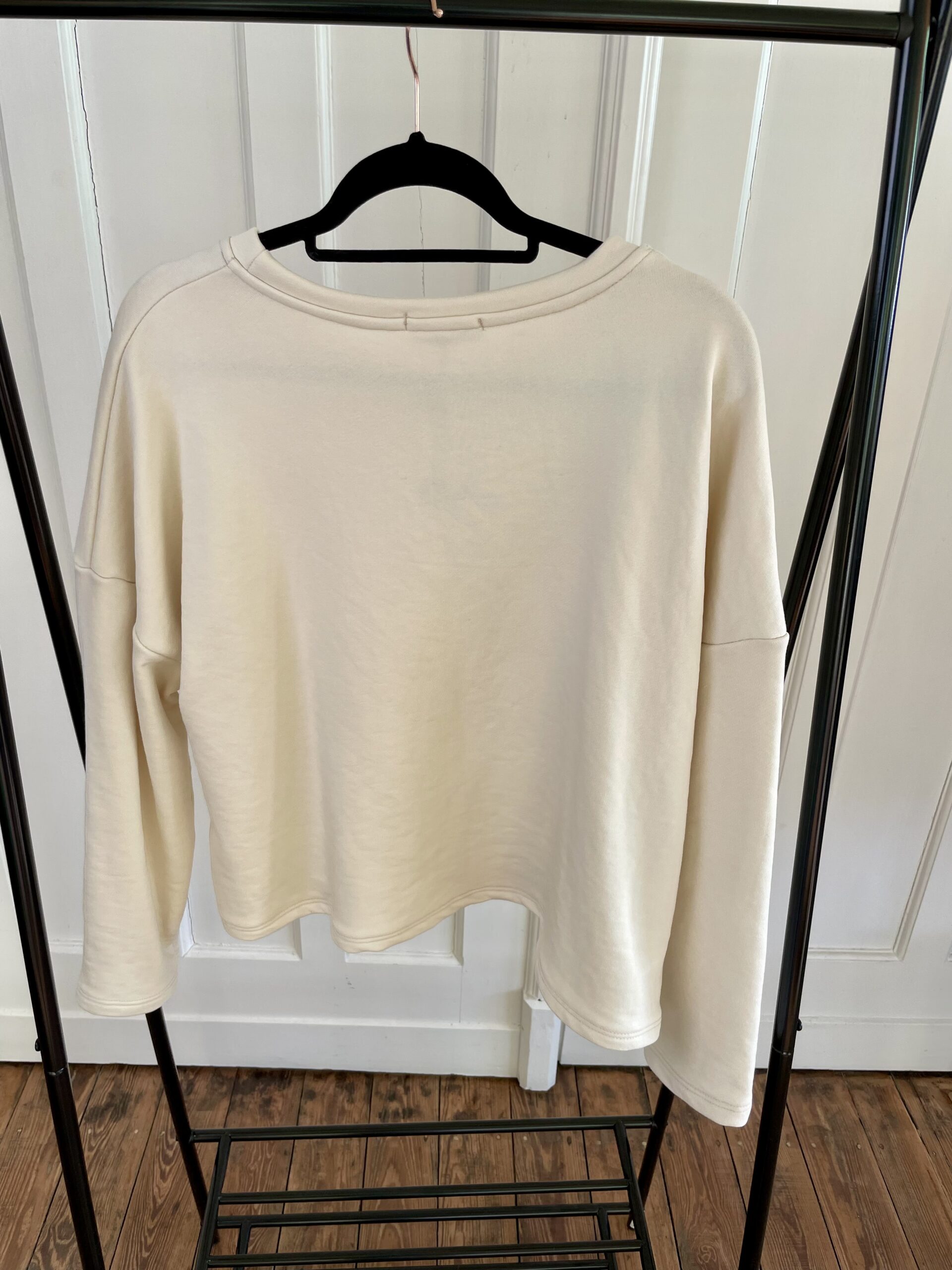 Das Sweatshirt ist in der Farbe CREME und locker geschnitten.