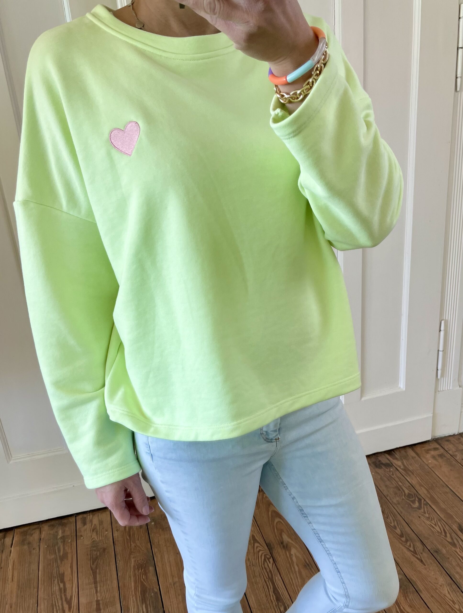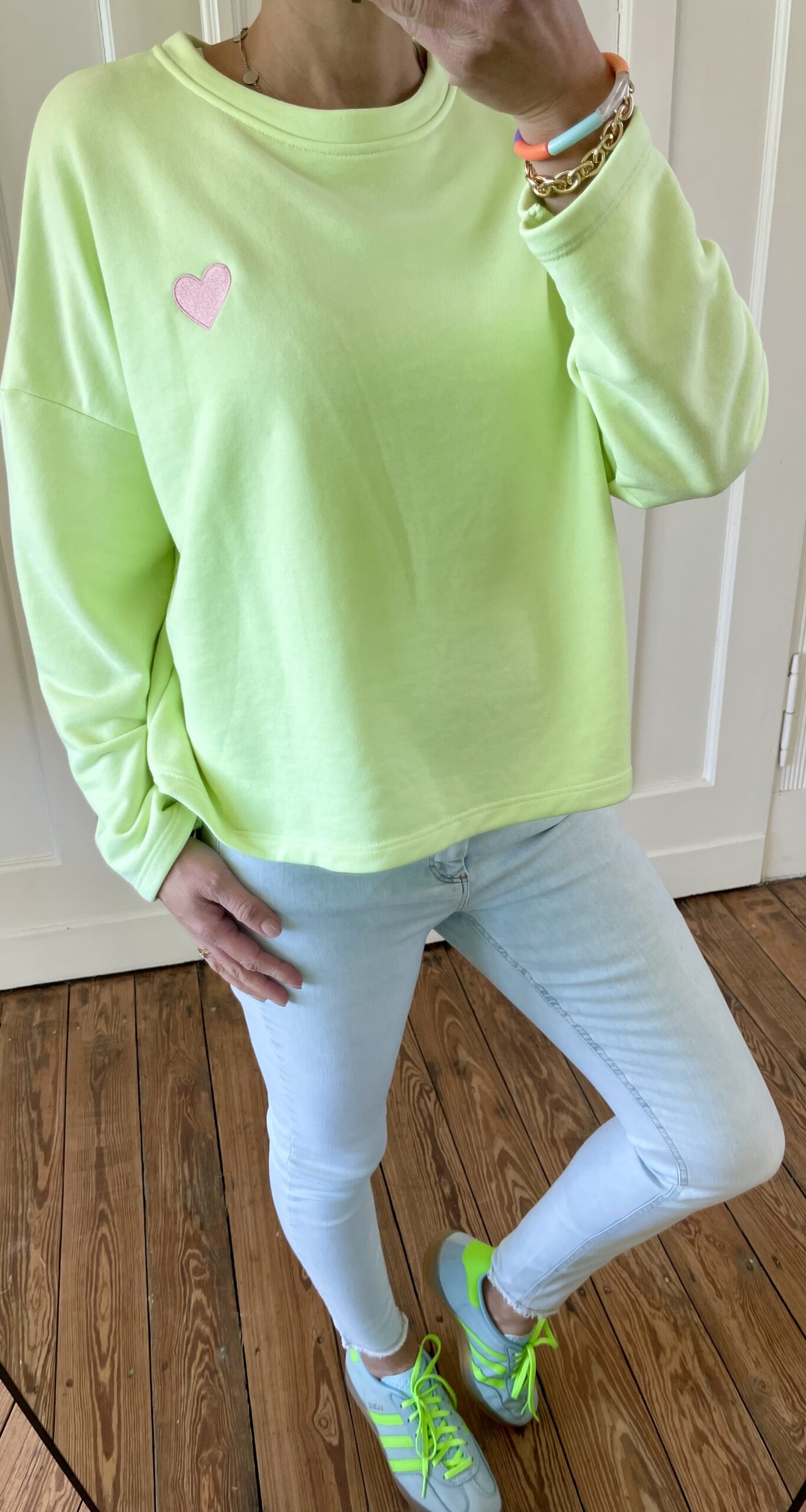 Ein etwas kürzeres Sweat mit einem pink aufgesticktem Herz auf der Vorderseite.