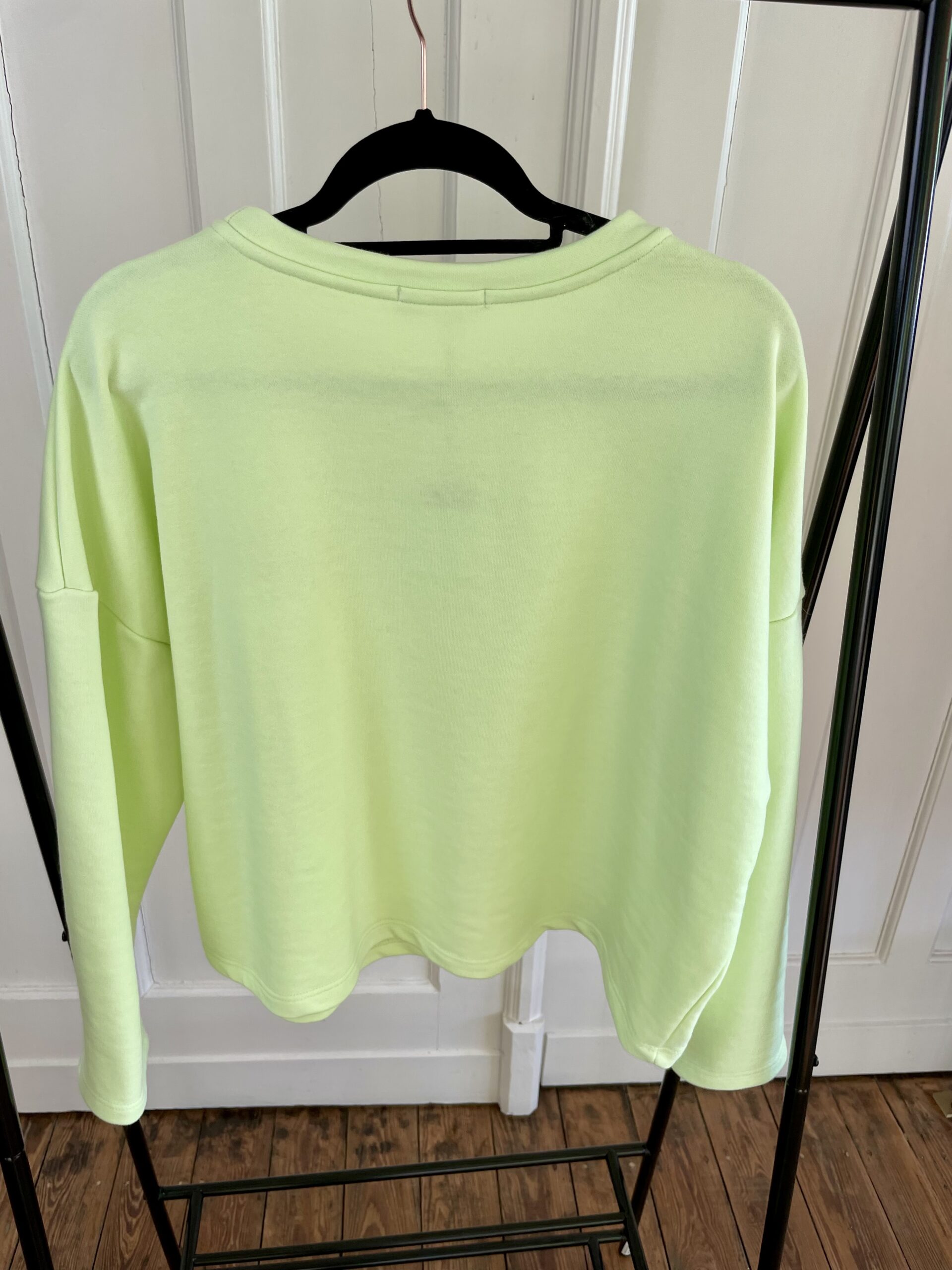 Das Sweatshirt ist in der Farbe LEMON GREEN und locker geschnitten.