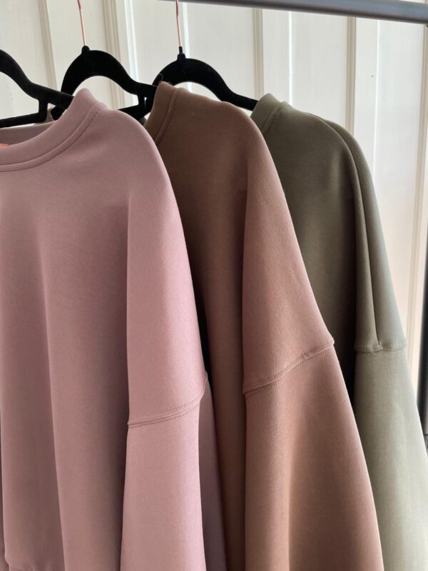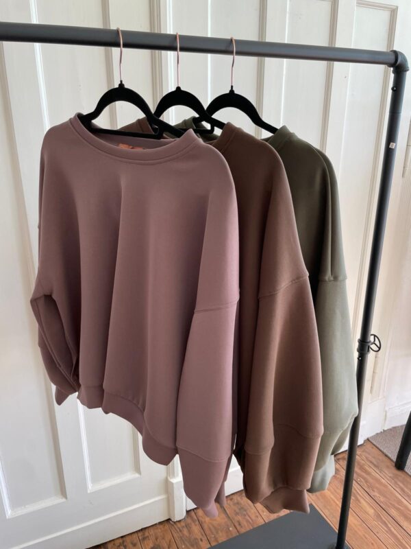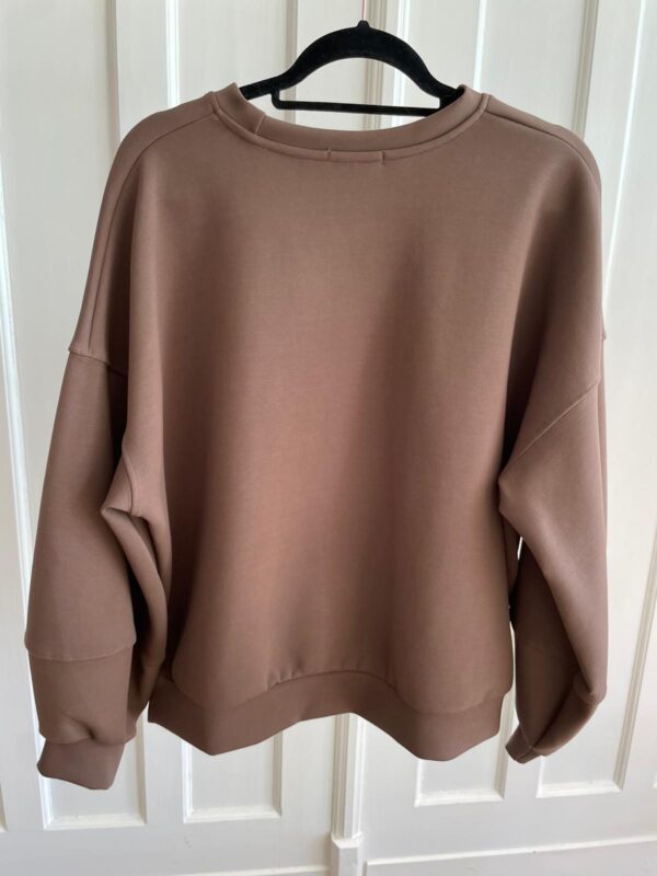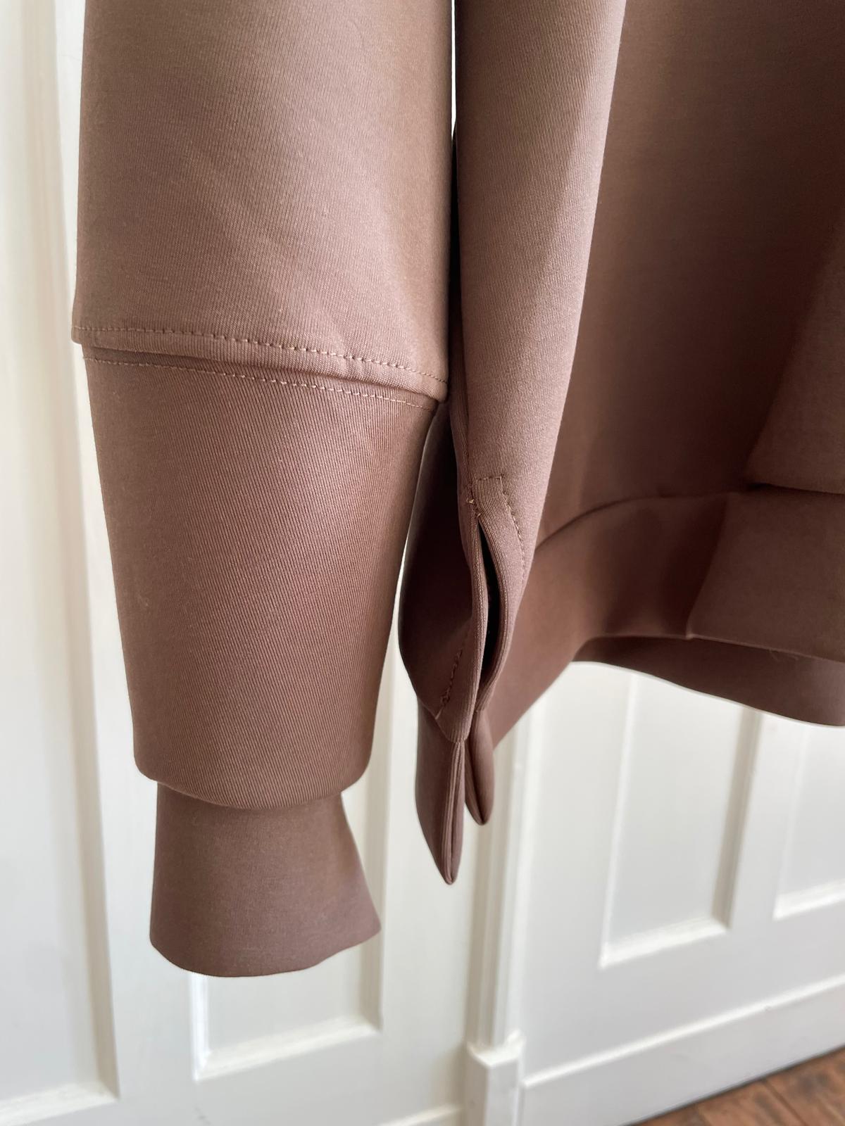 Das Sweatshirt fällt locker und lässig. Der Stoff hat ein edles Finish.
